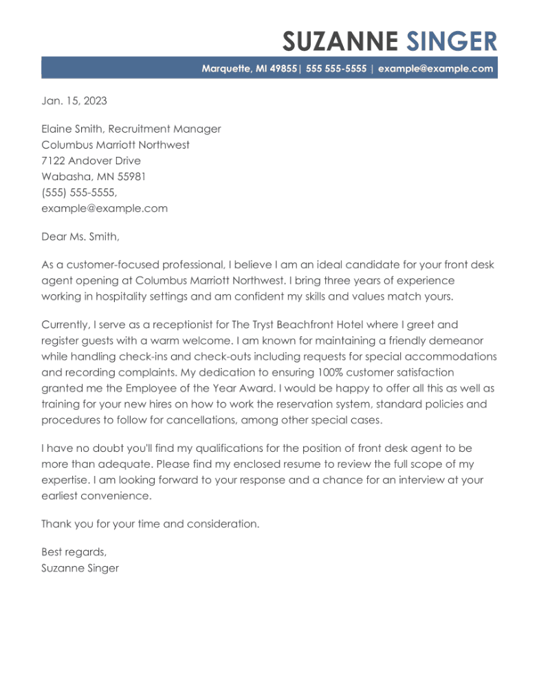 Hospitality Cover Letter Examples Expert Tips Free Resume Io